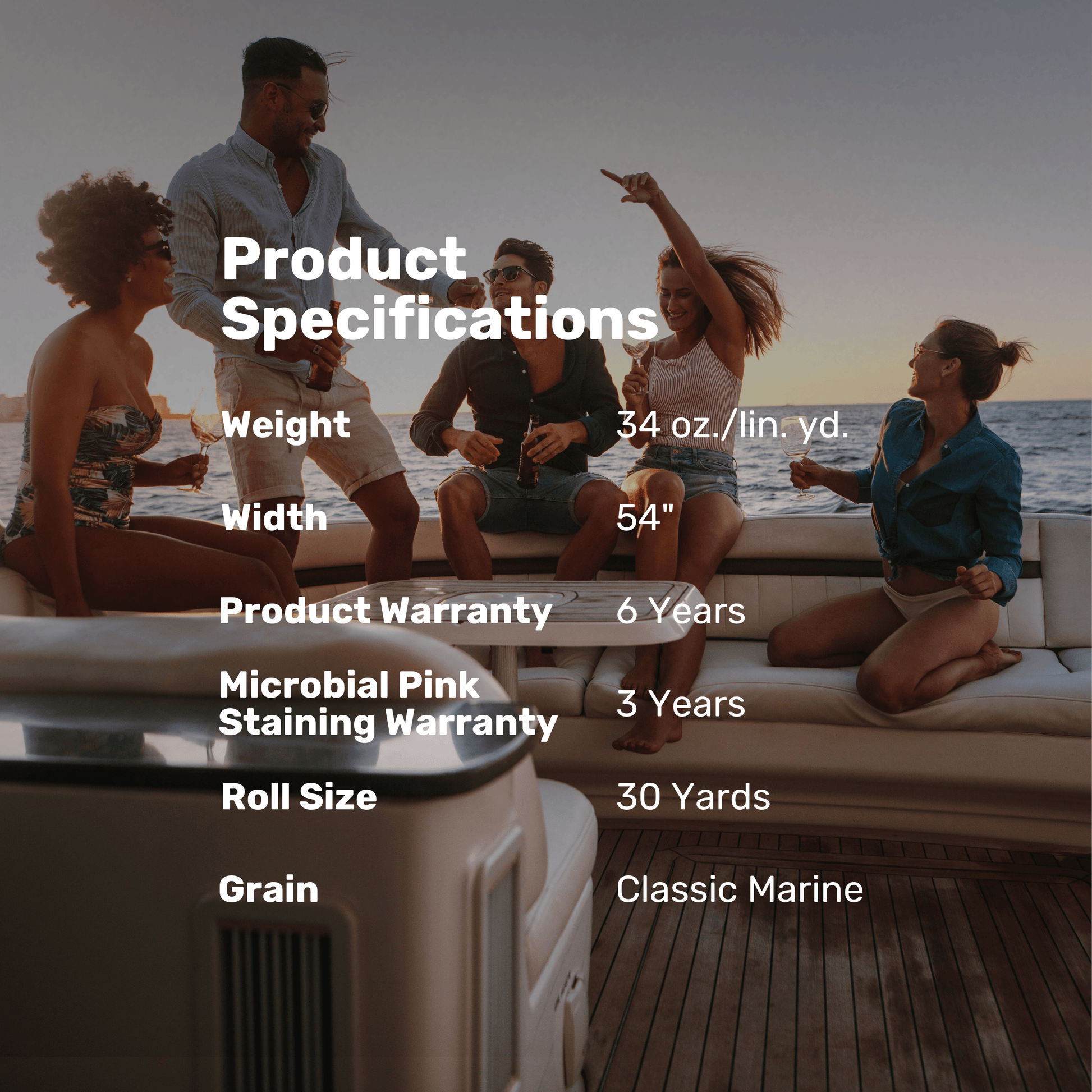 This professional-grade marine vinyl is engineered with a three-layer structure including a premium antimicrobial core, while boasting exceptional UV resistance and long-term mold and mildew prevention. With a durable polyester backing, CushionCraft Marine ProVinyl ensures the perfect mix of comfort, stability, and workability in the harshest marine environments. Elevate your marine experience with premier comfort and longevity.